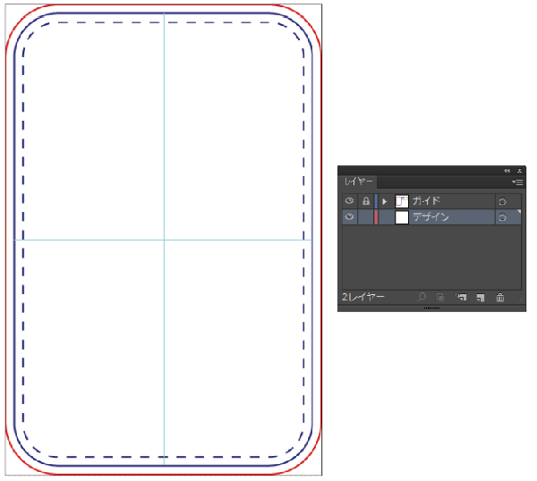 デザインレイヤーに絵柄を配置しガイドレイヤーは結合せずにご入稿下さい。