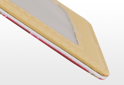 パスケースは、上下左右に1mmほどズレが発生しやすい商品です。仕上がり線近くに、丸枠、四角枠、カーブした文字などを配置すると、絵柄が切れたり、仕上がりの幅が不安定になったりします。 |