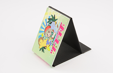 かわいくコンパクトな丸ミラーや、しっかり使える折りたたみ式スタンドミラー。合皮にオリジナルデザインを印刷できます。