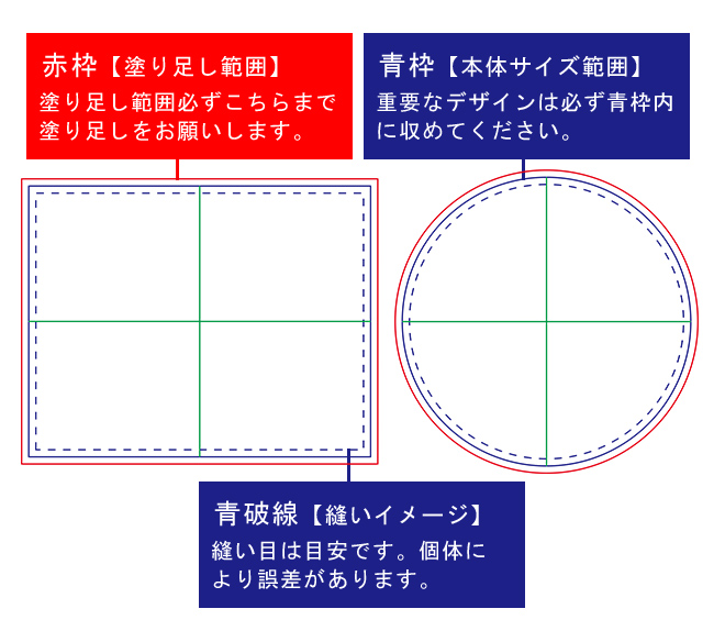 当サイトからダウンロードいただいたテンプレートには、ガイド線を入れております。下記の説明に従って、デザインを配置してください。