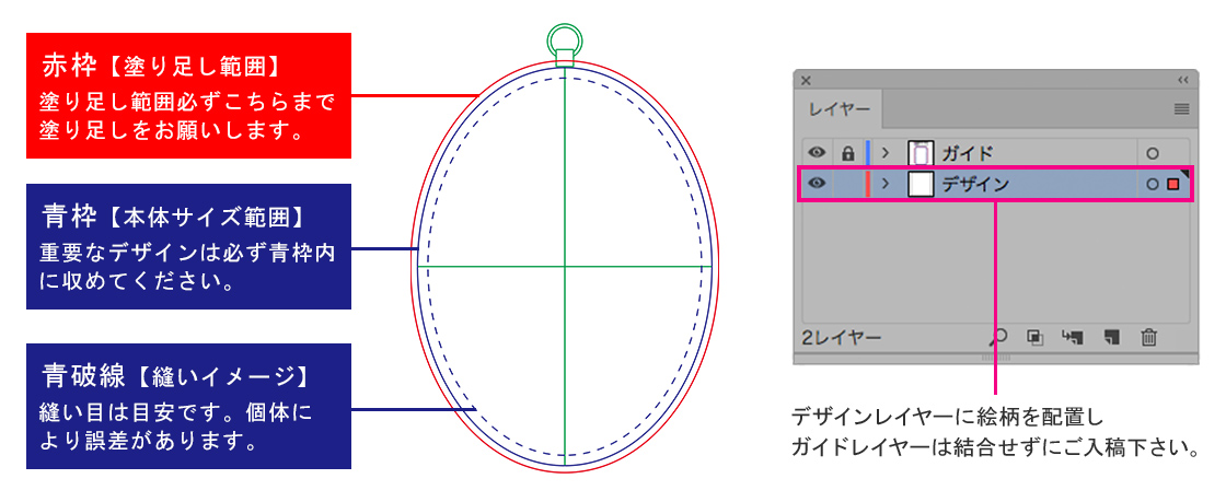 当サイトからダウンロードいただいたテンプレートには、ガイド線を入れております。下記の説明に従って、デザインを配置してください。