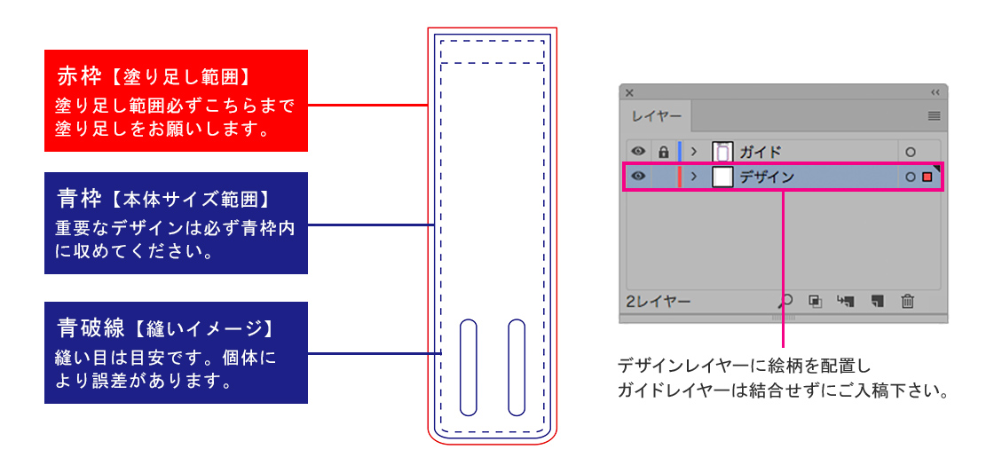 当サイトからダウンロードいただいたテンプレートには、ガイド線を入れております。下記の説明に従って、デザインを配置してください。